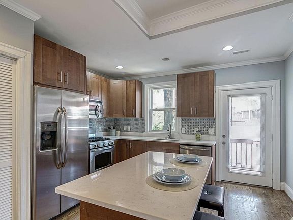 Main unit in a spacious, light-filled, and charming 3-bedroom, 2.5-bath row house in the heart of Bloomingdale. Walk through the front porch to the spacious, open living, dining and kitchen area, which includes a half bath. Gourmet kitchen has ample storage, a huge island, quartz countertops and a gas range. Upstairs you'll find one large master bedroom and a large guest bedroom. Third bedroom is smaller, has exposed brick wall, and would make for a perfect home office. Master bedroom has an ensuite bathroom, and a second full bath is accessed through the hall. Hardwood flooring throughout both levels. Smart thermostat. Large secured parking area with garage door. Steps from some of the hottest Bloomingdale and Shaw restaurants and the Bloomingdale farmers' market. Directly in front of a bus stop for the 90 and 92 lines, a 5 minute walk from the 80 bus line on North Capitol, a 10 minute walk to the Shaw Metro station, and 15 minute walk to the NoMa Metro station. 1 year lease. Secure parking for 1-2 cars included (open to excluding or sharing with basement unit). Nest smart thermostat installed, and house is pre-wired for Verizon FIOS and Comcast Xfinity. Tenant pays gas (cheap heat) and electric. Water, sewer, trash included. We can discuss small pets.