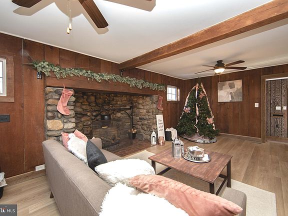 WOW! For all you Farm house lovers, you will come and not want to leave! Enter in to the front sunroom room with huge walk-in closet, the perfect spot to store away the hats, coats, shoes and keys before entering the flowing 1st floor. Once in the main house, you will be amazed with the large stone fireplace that once was used for cooking stews and chili. It has since been converted to gas and includes lights and remote start for your convenience. The beautiful updated kitchen has it's own country charm with light and bright cream cabinets and stainless appliances. There is decorative hood fan over the stove which offers a more upscale feel. The microwave sit conveniently in its own off the counter cabinet. There is also a coffee/wine station with beverage frig perfect for entertaining. But the show stopper is a classic Andes Cast iron stove that was the pride and joy of the previous owner. It has been converted to electric and has 4 working burners for additional stove top cooking. Newer laminate flooring runs through the dining room and living room. An updated full bath rounds off the main level. The 2nd floor offers 3 bedrooms, all with vaulted ceilings and an updated bath that has it's own private entrance to the main bedroom. 2nd floor has all new carpeting and freshly painted. Some other features are an updated electrical system (200 amp), replacement windows, updated HVAC system, newer roof and siding. This home has had much love and happiness and it's now time for a lucky new owner. If Rip and Beth were moving into town, I think this might be top on their list!