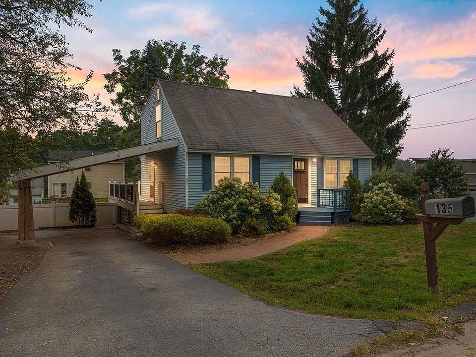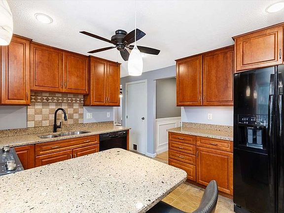 SIMPLY LOVELY! This three bedroom, two full Dormer Cape lacks nothing. Inside you can find a richly appointed kitchen that offers Granite counters, under cabinet lighting, custom cherry wood cabinets with pull-outs, perfectly placed pendant lights located above the breakfast bar. Newer air fryer oven. Just off the kitchen is a deck that just won't quit! Other features include wainscoting, upgraded flooring, and replacement windows. Entertain friends in the fully finished basement that includes a familyroom, separate office room, and a Nook for play area, game room, or exercise area. It also includes a walkout that will lead you to the oversized, fence yard with a water feature and fire pit. The extensively landscape yard makes this home equally inviting.