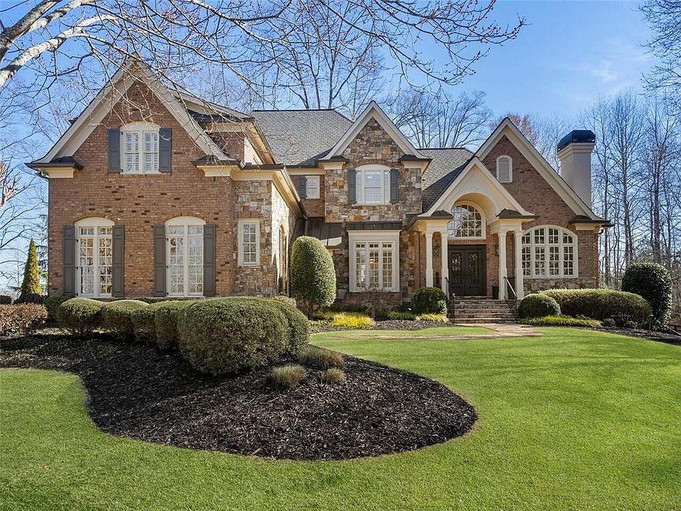 This beautifully renovated 4-sided brick home is nestled on a private +/- 1.8-acre lot on a cul-de-sac in the sought-after gated community of Greystone in Milton. Enter and be greeted by a two-story foyer flanked by a handsome wood-paneled study and a separate dining room complete with a showpiece Restoration Hardware chandelier, one of many found throughout the home. The main level is anchored by a living room flooded with natural light connected to a true chef’s kitchen boasting quartz countertops, Sub-Zero refrigeration, Thermador ovens, and a built-in Gaggenau steamer and fryer. The kitchen enjoys views to the breakfast room, vaulted keeping room, and a screened outdoor dining area. Step outside to a fenced backyard oasis, complete with a walk-out saltwater pool, outdoor kitchen, and meticulously landscaped grounds. The fireside primary bedroom completes the main level and is a tranquil retreat, complemented by a renovated primary bathroom featuring a soaking tub, double vanities, and a steam shower. Venture to the daylight terrace level offering a home theater, entertaining kitchen, fireside living room, game room, study, and a home gym. Upstairs you’ll find four additional bedrooms, each ensuite to thoughtfully renovated bathrooms. This luxury estate is equipped with a whole house and outdoor audio system controlled by Control4 technology, features a 3-car garage and is just minutes away from Avalon and downtown Alpharetta and Milton shopping and dining.