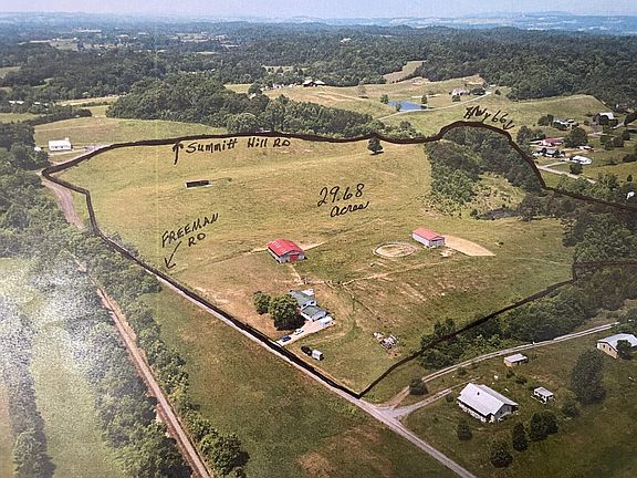Beautiful Country setting with Mountain View in East Tennessee. On this 29.68 acres You can develope it with all the road frontage it has on 3 different roads, farm, hunt, pasture cattle or horses, or build your dream home with no restrictions, while renting the house on this land now if you like. One floor of the home is being rented now for $900.00/mth. and the Owner lives on the other floor. The main level has 2 BR, 1 BA with tub & shower, W&D hookup, large Kitchen/Dining, and a Spacious Living Rm. There is a covered front and back porch and a Gazebo. The basement was converted into living quarters by the owner making a spacious Kitchen/Dining Rm, W&D Hookup, 1 BA with shower, Bedroom/Den with Fireplace and 2 Bonus Rooms which she is now using them as Bedrooms or u could use as walk-in-closet or storage, and a 2 Car Garage. Water is Well Water and has a Septic Tank, with Electric Heat Pump. There are 2 Pole Barns and a huge shed and pond. Inside the Barns you will see the one has Stalls with an open area for Hay or Machinery. The boundary lines are fenced with Barbed Wire and the lots inside that fenced area are Electric Fences. You are sitting on a Gold Mine with this land. Look at the road frontage it has. On Freeman Rd there is 745', On Summit Hill 1,393' where you have Public Water and Septic, on Hwy. 66 there is 180'. The Pole Barns are 30x50 & 41x64, Shed 12x48. The Barns have electricity, and they are using a hose to take Well water to barns from house. You will love all the Mountain Views. From the front yard and on the hill behind the barns is an awesome place to build and wake up to a Mountain View. Perfect location, you only have minutes to Bulls Gap for healthcare, supplies, dining and a short distance to Rogersville, Jonesborough, Johnson City, Kingsport, Bristol and approximately 1 ½ hours to Knoxville, Sevierville, Gatlinburg. Land does not multiply, buy now move later.