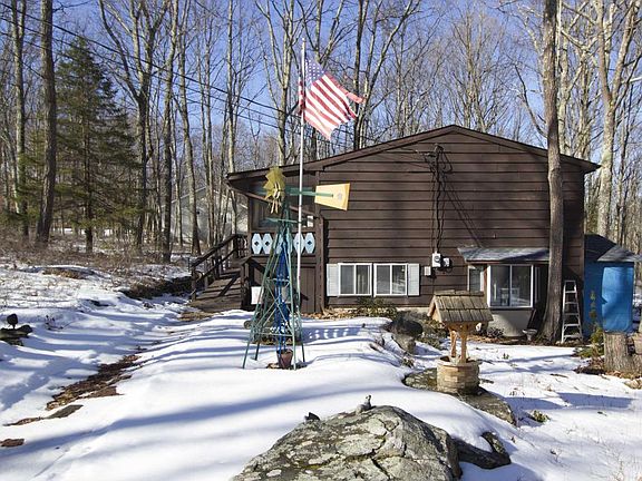 Here's your cabin in the woods - situated on 1.65 acres! Home offers 2 bedrooms, 1.5 baths, kitchen, living room, screened porch w/ ramp, lower level family room and more! Lower level offers second kitchen that can be turned back into a kitchen or used as a wet bar. Needs a little TLC, but a great starter property! Property is an estate & is in the process of being cleaned out. Private Pond for swimming or fishing or a family picnic/ family reunion spend the day having fun.