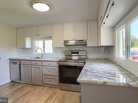 Welcome to this wonderful 2 bedroom, 1 bath well cared for and updated home! The charming eat-in kitchen features LVP flooring, stainless steel appliances, including refrigerator, dishwasher and electric range; granite counters and soft-close cabinetry. In the inviting living room, you’ll enjoy the charm including the pine board ceiling, recessed lighting, pellet stove and the mini-split system that provides heating and cooling throughout the house. The primary bedroom contains a built-in nightstand and headboard, as well as a ceiling fan. A second bedroom features a walk-in closet. The updated full bath, with laundry area (washer & dryer convey), is nicely sized with a tub/shower and attic access with pull down stairs! Additional amenities include 200 AMP electric service, water softener and treatment system and newer metal roof. The oversized detached 24x36 pole building on a concrete slab features 2 garage doors, heat and 100 AMP electric service. All this sits on .88 acre! Homes like this are hard to find! Be sure to check it out!
