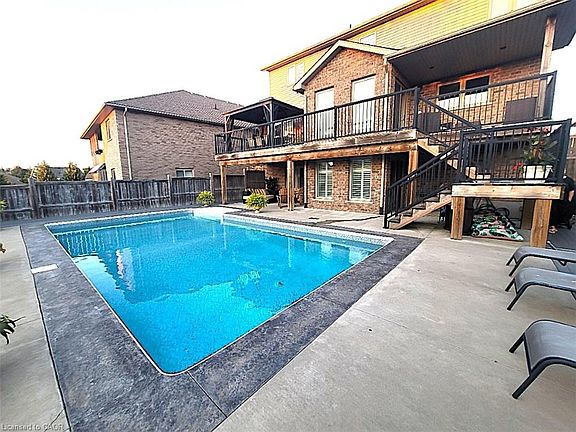 Apple butter festival & Open House, Sat, Sept 27th, 1-3 PM Beautiful Family Home w/Backyard Oasis Awaits! Welcome to this exceptional 4-bed, 4-bath residence w/fully finished w/o basement, thoughtfully crafted by D.G. Lavigne Custom Homes! Perfectly set on a premium 50 ft x 127 ft lot in a sought-after Wellesley neighborhood, this AAAA+ home offers over 3,000 sq. ft. of finished living space designed w/today’s families in mind. Inside, you’ll find a formal dinrm and a spacious eat-in kitchen w/granite countertops, under-cabinet lighting, a breakfast bar, and abundant cabinetry—open to the large great room with fireplace, perfect for gatherings. An oversized main-floor laundry room is a practical and much-loved feature for busy households. Upstairs, the primary suite is a true retreat, featuring his & hers walk-in closets and a generous ensuite complete with a large shower, makeup area, and bonus pantry-style storage. Each additional bedroom is nicely sized, providing comfort & privacy for the whole family. The fully finished walkout basement expands your possibilities—already complete w/a recreation room, cold cellar, & 3-pc bath w/glass walk-in shower, it could easily convert to a 2-bed in-law suite. Outdoors, the fenced backyard is a true oasis, offering multiple sitting areas around the sparkling 16 x 32' inground sports pool, a designated section perfect for pets or a garden, patios, decks, and patterned concrete walkways. Whether hosting family barbecues, pool parties, or quiet evenings, this yard has it all. Additional highlights include a double garage, triple exposed aggregate driveway w/three-car parking, an oversized covered front porch for enjoying your morning coffee, and immediate possession availability. Pride of ownership is evident throughout both the home and neighborhood—tucked away in a welcoming community just 15 minutes from Waterloo & Costco, w/easy access to the new Wellesley Sports Complex featuring a walking track & recreational facilities.