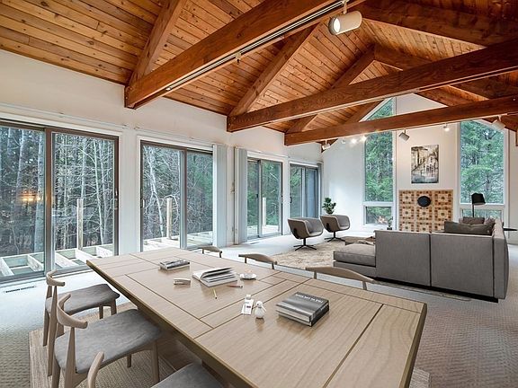 Custom-built, 1-owner, 2-story, redwood/cedar Contemporary, on over 3 acres of tranquility! Modern design character with wood finishes and woodland views. Level 1: open stairwell, then family rm w/ blt-ins & sliders to patio/yard, master bdrm suite w/ full bth, walk-through closet & slider to screened patio w/ view of woodlands/stream. You can hear the sounds of the babbling brook is from the master bdrm- Just tranquil... 2nd bdrm, full bth, home office, large studio/in-home business potential w/ separate entry. Level 2: Soaring open cathedral post & beam ceilings w/ abundant sunlight just awaits you! Sliders open to beautiful newer trek deck (2020) from living & dining rm, kitchen w/ all appliances, cozy den, half bth, & 3rd bdrm w/ cathedral ceiling and blt-ins. Oversized 2-car garage & attached 2 story carriage barn w/ loft storage. MASSIVE POTENTIAL here for a great future investment. This is a DIAMOND READY FOR POLISHING. Excellent bones, cosmetic updates needed throughout.