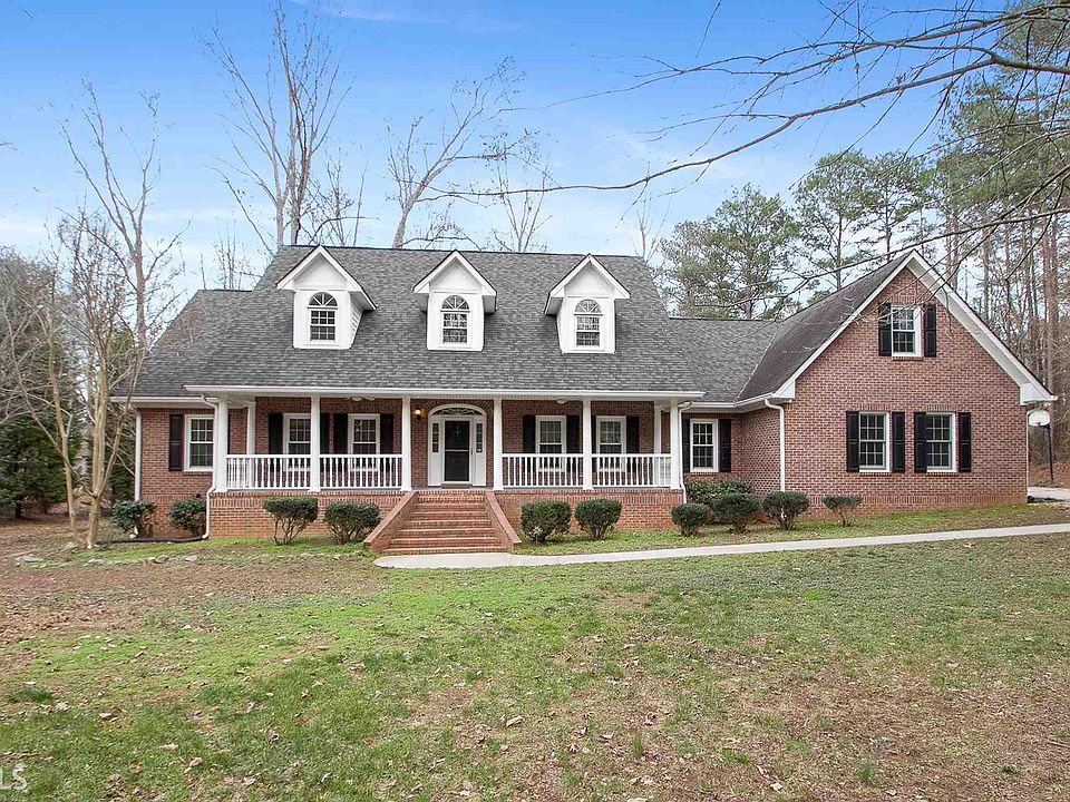 BIG, BEAUTIFUL BRICK CAPE CODE ON 1.14+/- AC LOT ON NEWNAN COUNTRY CLUB GOLF COURSE HOLE #5! 3 Lg bedrooms plus a very lg bonus room or 4th br, 1 1/2 baths & master br on main level, 2 br & Jack-N-Jill bath u/s. The 4th br also has an office area plus a very lg closet or storage room. There is a formal living room & a formal dining room plus a lg family room w/a masonry f/p w/gas logs. Kitchen w/island/bkfst bar open to a bkfstt area plus a sitting area. There is a nice laundry room w/sink & a dbl garage w/remote access. New hdwd floors on the main level except baths & laundry room. New windows. Freshly painted interior & exterior. Front porch. Rear patio. Don't miss the drone & virtual tours! Awesome Property!!