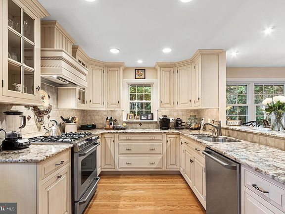 - Window Treatments, Built-Ins, Eat-in Kitchen, Wood Floors, Attic, Kitchen - Country, Upgraded Countertops, Stall Shower, Tub Shower, Primary Bath(s)