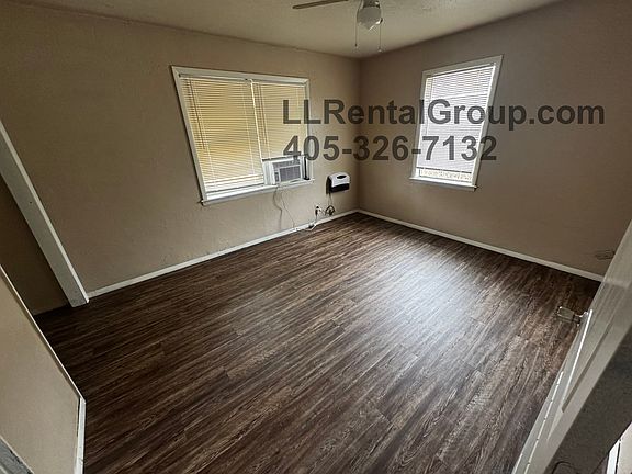 Spring is near, This house has a storm shelter! Spacious 3 bedroom/ 2 bath home, new floors and paint. Carl Albert schools, near Tinker AFB, shopping, and restaurants. Dishwasher, heat and several window AC's. Lots of land but not fenced. Well water, not MWC or Sooner Utilities. Well pump room in house has room for storage There is a bonus rooms with room for more storage or an office. $35 application fee per adult, 1/2 off Application fee for active and former military. Utilities and lawn care are NOT included 2 Pets allowed (cat/dog) with approval and a $250 non refundable pet fee. Vicious breeds not allowed due to insurance restrictions. No reptiles or fish tank $1175.00 Rent/ $1275.00 Deposit $25 off rent for an 2 year lease