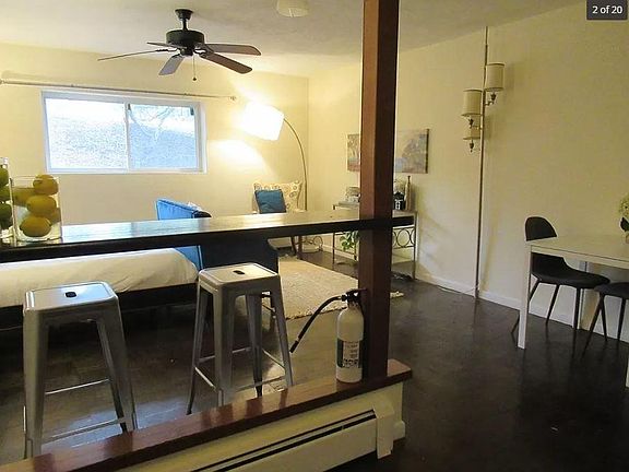 Sleek and modern studio apartment. The custom built-in Murphy bed allows for easy living in this creative space, the updated and modern feel extends into the open kitchen with stainless steel appliances and a breakfast bar for everyday use or entertaining, the ceramic tiled bath with glass sliders complements the balance of the footprint, and at it's doorstep is the immediate benefits of the Neponset River walking trails & bike path, the vibrant retail business and local restaurants in Adams Village, and that doesn't even mention the easy MBTA and direct highway access that keeps the City of Boston and surrounding communities within minutes, ample closet space, and off street parking. Heat and hot water included in rent. Renter responsible for electric and water.