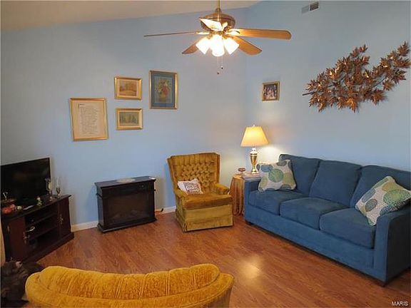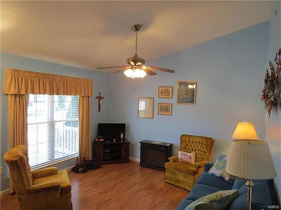 Care Free Living awaits you in this fantastic villa! The first thing you notice upon arriving is the covered front porch with plenty of space for a few chairs so you can enjoy a nice spring or fall evening chatting with your neighbors. Walking in you're greeted by the living room which features a vaulted ceiling and tons of natural light from the front windows. A short hallway leads you past the garage entrance as well as a half bath. From the hallway, you enter the galley kitchen with a clear sight line through the dining area and rear bay windows which overlooks a small wooded area. The home's two bedrooms are to each side of the kitchen and both feature large easily accessible closets with sliding doors. The master bedroom directly connects to the large full bath and laundry area. There is also a second covered porch on the rear of the house where you can sit and enjoy the serenity of nature and wildlife. This 55+ community is ready to welcome YOU as their new neighbor!