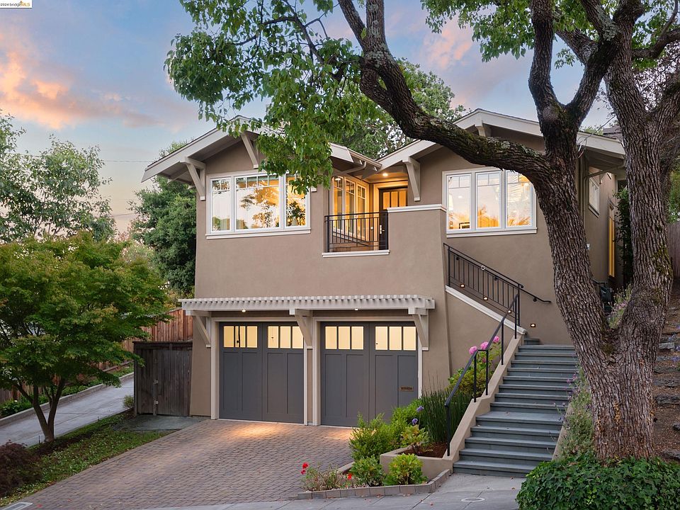 Nestled on a tranquil, tree-lined street, this stunning Craftsman home blends classic charm with modern elegance. Enjoy peace of mind from a down-to-the-studs remodel by a luxury builder in 2015, featuring a new foundation, hardwood floors, windows, insulation, HVAC, plumbing, and electrical systems. Spanning two levels, the home boasts three bedrooms and three bathrooms, offering a serene escape from nearby hustle and bustle. The main level greets you with an expansive open-plan living area that merges with a gourmet kitchen and dining space. You will also find an additional full bath and charming bedroom with French doors leading to a multi-tiered backyard. The garden features elegant steps, garden boxes, and a spacious patio area. The luxurious primary ensuite offers a serene escape with a spa-inspired bathroom. The lower level is designed for comfort and entertainment, with a spacious family room opening through French doors to another patio area. This level also includes a bedroom and bathroom, fully equipped laundry room, and access to the two-car garage with a car charger. Located near the boutiques, shopping, and dining of Grand Lake and Piedmont Avenue, and with access to esteemed Piedmont schools and parks, this home is perfectly situated.