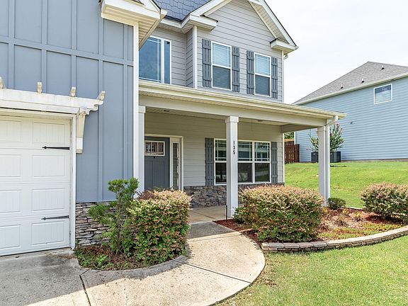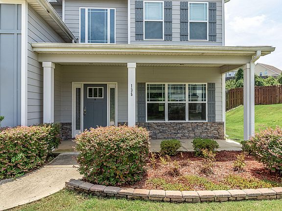 This beautiful home features 4 bedrooms, 3 full baths, and an additional bonus room. The open floor plan showcases hardwood floors throughout the foyer, formal dining room, kitchen, and great room. The kitchen is equipped with stainless steel appliances, granite countertops, a stylish backsplash, and a cozy eat-in area. Upstairs, the spacious master suite offers a private bath with his and her sinks, a large soaking tub, and a tiled shower. There are also 2 additional bedrooms and a generous bonus room on the second level. On the main floor, you'll find a guest bedroom and bath, along with covered front and back porches, and an outdoor wood-burning fireplace. This home is conveniently located within walking distance to the community pool.