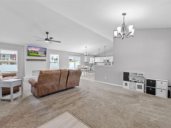 Are you ready to make memories in your new home? This vaulted great room ranch has the features everyone wants. There is a faux fireplace that adds just the right amount of charm to the great room. Kitchen features granite counter tops, white shaker style cabinetry, center island, corner pantry, stainless steel appliances with fridge included. Main level laundry room, separates kitchen from garage, has custom storage nook that is perfect for your needs. Owner's suite has walk-in closet, private bath with shower and double bowl vanity. All three bedrooms have ceiling fans. Get ready to entertain this summer! The backyard can control all the animals both human and canine with the 6 ft white vinyl fence. The massive patio can accommodate a sitting area, grill and whatever else you can think of. Subdivision has neighborhood clubhouse and pool. Garage is insulated with one deeper side to accommodate a truck or workshop. It's time to make this your home.