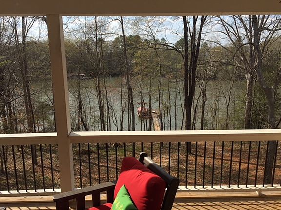 Lake Hartwell waterfront home that's Traditional style in front and Charleston style on the lakeside. Escape to this quiet street of great neighbors and lakefront enjoyment. Built in 2017, this plan has 4 bedrooms on the main floor and plenty of room to expand below. Perfect house for guests visiting, the split bedroom floor plan and separate baths make this an ideal lakefront getaway. The open kitchen concept has two-toned wood cabinets, granite counters, large windows over-looking the water and bar/peninsula with wood panel siding. The kitchen drawers are soft close, upgraded lighting, under-counter lighting, and top quality plumbing fixtures. The great room has a stone, remote-controlled gas log fireplace with custom crafted shelving on either side. Real oak floors abound, not engineered hardwood. For more formal occasions, the dining room is open to the great room and has beautiful moldings and trey ceiling. The master bedroom overlooks the lake and has access to the back deck. the sensuous master tub is large enough for two! The separate step-in shower is all ceramic tiled. One of the other bedrooms could be considered an in-law suite as it has a full bath attached. The walkout basement adds exceptional space to add a rec room, more bedrooms and a bath (stubbed). The view across the water provides excellent sunsets and getting to the dock a breeze. At the water, it's a Fisherman's Paradise. Dock includes a 40 foot ramp. The garages can house up to 5 cars or boats, or the space would make a great studio, workshop, or business storage space. Lot in GREEN ZONE with Corps of Engineers. Two story dock can be approved.