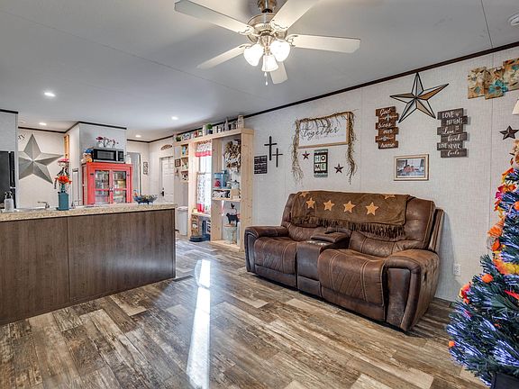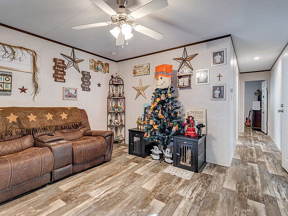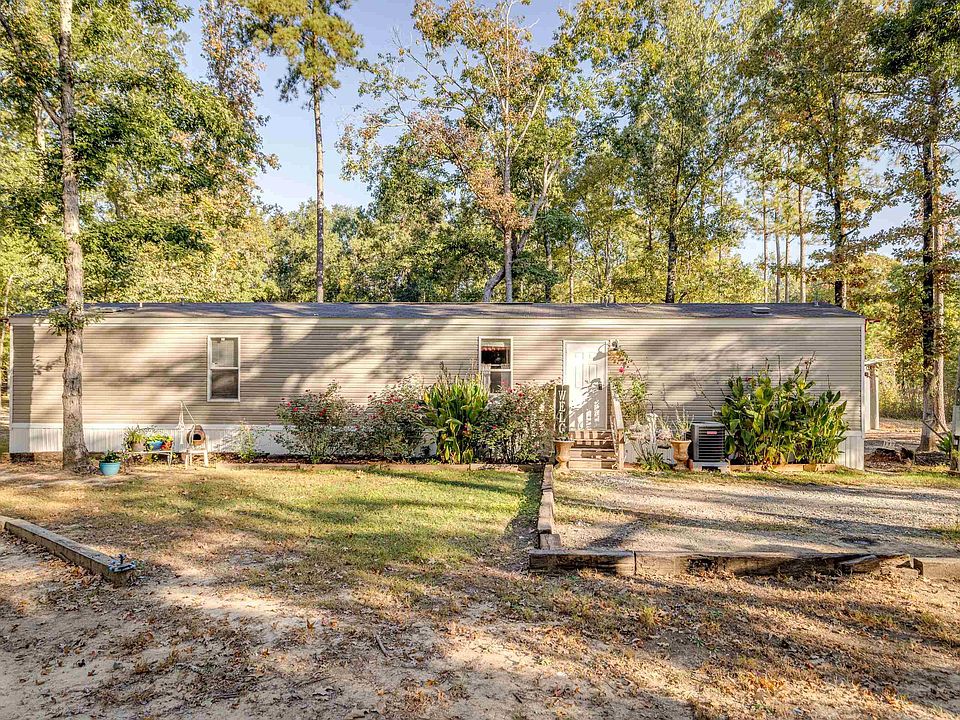 This 2020 Champion model 3-bedroom, 2-bath mobile home sits on a spacious and shaded 3-acres, offering a peaceful setting with plenty of room to enjoy. The primary bedroom boasts a walk-in closet. The open floor plan design is welcoming for guests and leads out to the 15' x 30' enclosed back porch. Outside you'll find a workshop for extra storage or hobbies, there is also a pad on the property with septic, water and lights set up for a second mobile home. This place has so much to offer, Schedule your showing today!