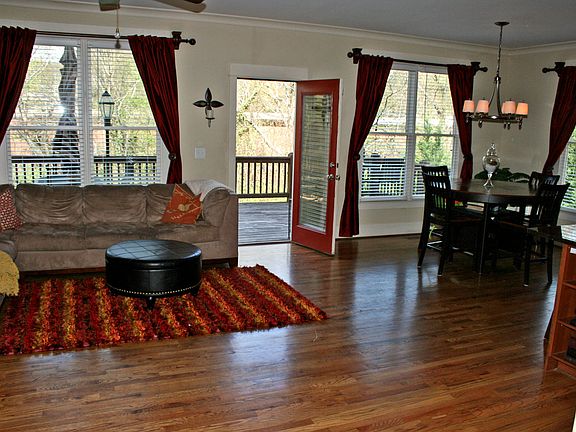 Great in-town living!! Convenient to downtown and stadium, 10 minute walk to both locations. Neighborhood sidewalks and a 5 minute walk to Dudley park and Greenway. A private backyard that backs up to Trail Creek and UGA Building. Seven year old home in downtown location. You will love the floor plan with one bedroom and bath on the main floor and three bedrooms and two baths upstairs. The laundry room is convenietly located upstairs next to the master bedroom. Your guest can get away with one bedroom and one bath in the basement. Nine foot ceilings with the kitchen being open to the breakfast room and great room. Entertainig is easy with large open rooms and a nice size deck off the great room overlooking Trail Creek. This home has lots of natural light.