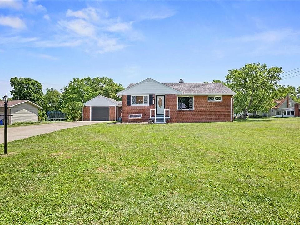 Three bedroom ranch sitting on a half-acre tabletop lot! Move-in condition with lots of updates! Renovated galley kitchen with lovely maple cabinetry, corian counters, full pantry and backsplash. Gas stove, dishwasher and new fridge. Open living/dining room with refinished oak hardwood flooring! All three bedrooms have brand-new carpeting! Freshly painted throughout! The HUGE basement was just drywalled and has two areas measuring 19'x10' and 20'x16'. Also two large storage closets. Laundry room includes washer/dryer and utility sink. The second full bathroom was just finished for this sale and is located off the laundry room. Detached garage measures 22'x14' and is connected to the house with a covered breezeway. And the porch swing is included! The large covered back patio measures a whopping 38' long and overlooks the flat backyard - just begging for a pool! Shed is included and in very good condition. Radon system in place. This house is ready and waiting for you to call it home!