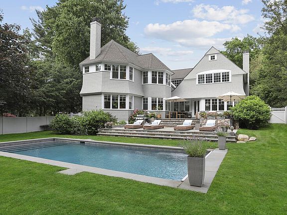Move right in to this stunning Rowayton home designed by renown architect, Roger Bartels. Sunny, airy, open floor plan that seamlessly flows to a gorgeous new outdoor entertaining area with large stone terrace overlooking brand new heated pool with controlled cover and professionally landscaped fenced in backyard. The open floor plan features a gourmet kitchen with two waterfalll quartz islands, two sinks, large 6 burner professional range, Subzero and a large eat in area adjacent to fam. rm. with stone FP. Formal liv. rm w/modern FP, adjacent library, formal din. rm. open to other rooms, two powder rms, laundry and mud rm off of the two car attached garage. Grand stairs lead to 4 BR's/3 BA's including a fabulous master suite with valued ceilings, walk-in closets, and lg bath w/free