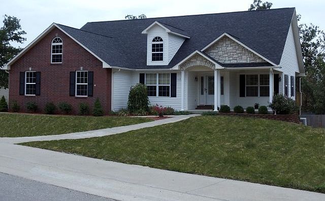 As you walk up to this home, you are greeted with a beautiful stone front veneer. Inside has nice hardwood flooring throughout living room, dining room and kitchen. Cathedral ceilings and arched entry ways. Dining room has chair railing. Kitchen has maple cabinets with European hinges, crown molding and under cabinet lighting, appliance garage and stainless steel appliances with double oven. Cove lighting in Master bedroom, master bath has separate double shower with dual seats, spa jetted tub. All bathrooms have cultured marble tops. Wrap around covered deck that leads to the dining area and master bedroom.Full finished walk out basement with a lounging area and reading nook, bedroom, bath, family room, John Deere room and a storage room. Backyard has privacy fence with storage shed that is on a permanent foundation and a ramp for easy access. Property is on a corner lot with side entry garage.