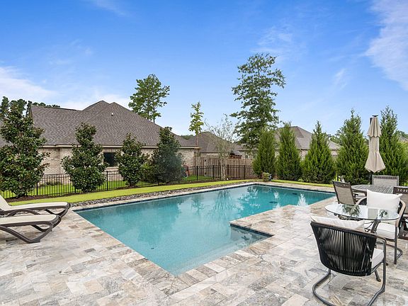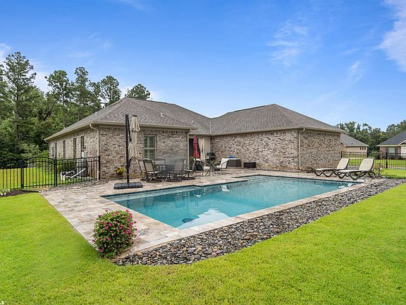 BACK ON THE MARKET AT NO FAULT OF THE HOME. Popular Gold Fortified Truland Mesquite plan in much sought-after neighborhood of Fox Hollow in Fairhope with one year old pool and backyard landscaping. Large corner lot with a 17’x28’ Gunite pool with travertine decking. Backyard landscaping with mature trees for privacy. This craftsman style home offers open concept living on one level with wood floors, tile, gas fireplace and plantation shutters. 10’ ceilings in great room, dining room and primary bedroom adds to the spaciousness of this home. The kitchen provides plenty of entertaining space with granite countertops, large bar height island, white painted cabinets, gas cooktop, built in oven and microwave. New paint in all rooms except Primary Bedroom. Tankless hot water heater and buddy meter to save on irrigation water charges. Outdoors you will also find a screened in porch and extended patio area leading to the pool. As an extra bonus, there is an all-house Generac generator that is practically new!