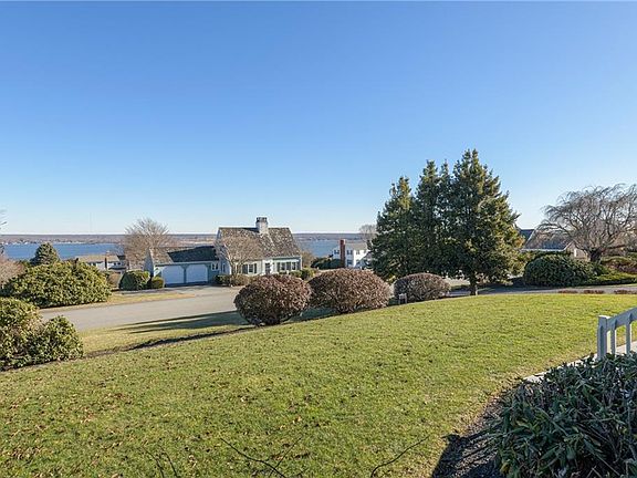 Water views and sunrises! Sea Meadow Farm - Sited hillside, with beautiful water views of the Sakonnet Passageway from just about every room, is this classic Cape Style home. The corner lot, with manicured grounds, dotted with fruit and native specimen trees, provides both privacy and gorgeous curb appeal with circular drive and new cupola. Step inside to this turn-key residence with vaulted family room, highlighted by the stone wood-burning fireplace, beautifully refinished reclaimed wide plank hard wood floors, and renovated open concept kitchen. The freshly painted interior offers a generous sized first floor primary suite overlooking the water with private outdoor space. Additionally on this level is a living room, dining room, and half bath. Step upstairs to two guest bedrooms, each with en-suite bath. Recent improvements include: New 50 year GAF roof, freshly painted exterior, new carpeting in bedrooms and stairway, fully renovated second floor bath, and more! With deeded neighborhood access to the water, the lifestyle for the water enthusiast is at your fingertips. Easy thirty minute access to Providence and Southeast Massachusetts, and fifteen minute drive to downtown Newport.