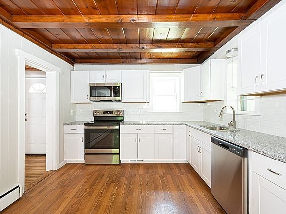 This recently updated 2 bedroom Ranch features an updated kitchen with granite counters and stainless steel appliances, fresh paint and updated flooring throughout, new bath, new heating system and oil tank. This home has a third room being used as laundry and could be an office or den. Enjoy the enclosed porch or spend time in the large, private backyard. This is a Homepath property.