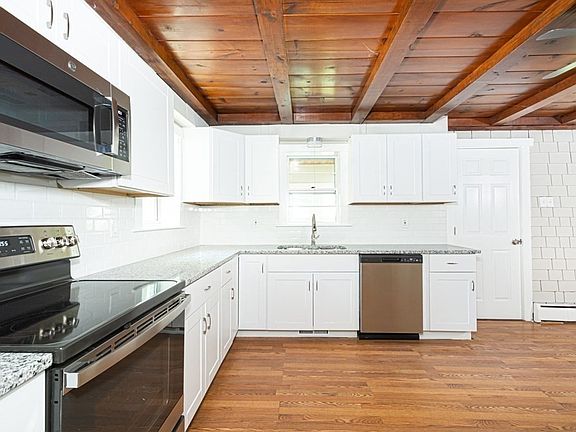 - Features: Ceiling Fan(s), Beamed Ceilings, Flooring - Wood, Dining Area, Countertops - Stone/Granite/Solid, Stainless Steel Appliances