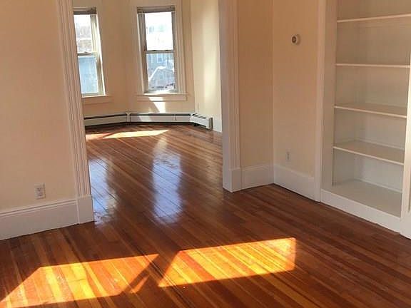 Spacious 2-bedroom apartment on the top floor of a three-family house. The unit features a formal dining room, living room, eat-in-kitchen with stove and fridge, two bedrooms, full bathroom and alaundry room in the unit. Hardwood floors throughout. Great natural sunlight. Private porch. The apartment was freshly painted. Plenty of street parking.