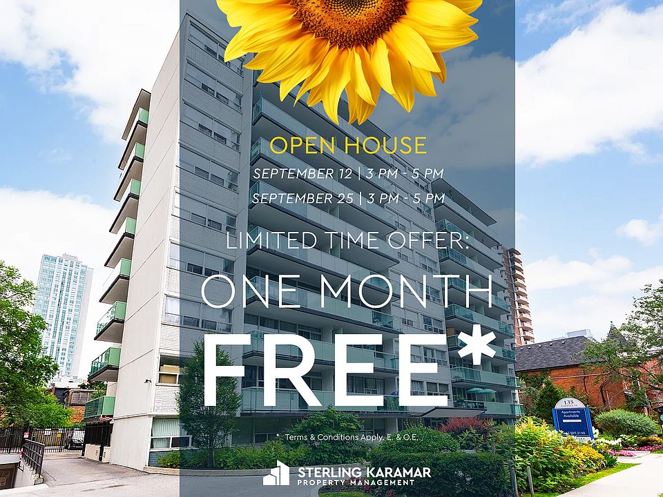 About Limited Time Offer | Enjoy One Month FREE on a 13-Month Lease!* OPEN HOUSE | September 12 from 3 pm - 5 pm & September 25 from 3 pm - 5 pm Welcome to 135 Isabella Spacious Suites in a Prime Location! Ideally located steps from Sherbourne Subway Station, 135 Isabella offers thoughtfully designed rental suites ranging from 600 to 900+ square feet. These bright and spacious units feature fully renovated bathrooms and kitchens, sleek hardwood floors, and private balconies for a modern living experience. Beyond the elegant interiors, 135 Isabella provides exceptional convenience with on-site laundry, underground parking, and professional on-site management. Enjoy being just minutes from Yonge & Bloor, Yorkville, Greektown, and The Village some of Toronto's most vibrant neighborhoods filled with shopping, dining, and entertainment options. Inquire Today to Learn More! Building Highlights - Underground Parking - Elevators - On-site Staff - Laundry Facilities - Private Balconies Suite Features - Renovated Kitchens & Bathrooms - Hardwood Floors Throughout - Spacious Layouts - Large, Bright Windows Nearby - Steps from Sherbourne Subway Station - Walking Distance to Grocery Stores, Local Shops and Restaurants - Minutes from Yonge & Bloor, Yorkville, and The Village - Close to Parks and Entertainment Living at 135 Isabella means having the best of Toronto at your doorstep. Whether you're commuting via subway, exploring the cultural hubs of Yorkville and Greektown, or enjoying the lively atmosphere of The Village, everything you need is just minutes away. With a welcoming community and unbeatable location, this is the perfect place to call home. ** Sterling Karamar Property Management is committed to providing an exceptional leasing experience. We do not request a fee to book a tour or a deposit to reserve a suite. *Pricing, availability, and incentives are subject to change. Conditions apply. Suite features may vary. Images and virtual tours may not reflect actual suite finishes. E. & O.E. Community Amenities - Elevators - On-site staff - Laundry - Balconies - Close Proximity to LGBTQ+ Community Suite Amenities Utilities Included - Heat - Water