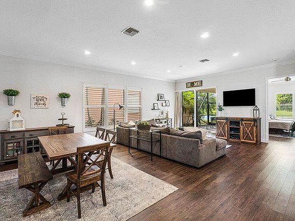 Absolutely gorgeous ''Bella'' model in the resort-style community of Mirabella! One-of-a kind remodel includes a re-imaging of the floor plan. Now, it's a true open concept w/ huge center island, farmhouse sink, industrial style faucet, quartz counter tops, subway tile backsplash, pantry & newer appliances w/ vented gas range & griddle option! Plantation shutters throughout! Medium pecan color laminate flooring throughout. You will be wowed by the dramatic vaulted ceilings and the large living areas. Dining area can accommodate a large table perfect for family gatherings! Bedrooms are split for maximum privacy. Bedroom 2 is the size of a master suite - + it's own separate den space! Bedroom 3 is being used as an office but is a true 3rd bedroom w/ closet. The master suite is a WOW! Master closet is spacious and the master bath is a sanctuary. Double sinks w/ white shaker cabinetry & quartz countertops. Free standing corner soaker tub is the perfect place to relax. Large shower w/ frameless glass enclosure, subway tile & large rain-style fixture w/ body sprayer. All accented beautifully w/ greige mosaic tile flooring throughout. Laundry room is spacious with front load machines, butcher block counter tops and built-in drop zone! You will appreciate the special features in this home like wood accent shelving, wainscoting accents, modern farmhouse details & unique lighting.