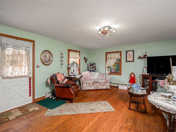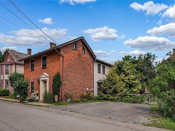 Welcome to this Historical home built in 1810 with the original first floor room and room above. Enter into the comfortably sized Living room, Dining Room for formal or family meals, and kitchen. The kitchen has countless cupboards and an island with plenty of storage and counterspace. All kitchen appliances stay. The entire home has been added onto and updated. A powder room/laundry area that can be a shower finishes off the main floor for a cozy, spacious atmosphere. Upstairs is the Master Bedroom with original wooden ceiling beams and an updated en suite with a jet tub and shower.(3years ago) Also a there is 2nd Br and a room which could be the 3rd Bedroom. Off the kitchen is a wrap around covered deck and large back yard. An Atrium off the deck is a green house/storage area. A laborinth of beautiful flowering gardens leads you through sitting areas, fire p[t and ends at Connoquenessing Creek to watch the kayakers and enjoy the peace and quiet.5 min to I79. No show til Sat Aug.5