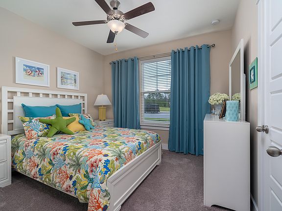 Gorgeous 3 bedroom 2 bath home in Breakfast Point Community, directly across the street from a park. Quiet area of the neighborhood. This home has it all! Dark wood flooring, grey cabinets, quartz countertops, open living concept, huge kitchen island with extra seating, a door leading out from the dining area to the lanai AND sliding glass doors opening up onto the large extended lanai. The master bath has a tiled shower and walk in closet. This home has lots of natural light and fully fenced in yard with nice, mature landscaping! Built by David Weekly Homes which means it was constructed above current hurricane codes with 2x6 exterior wall framing and the frame of the house is anchored onto the slab of the home. Security system installed on all doors and windows. Floor plan attached does