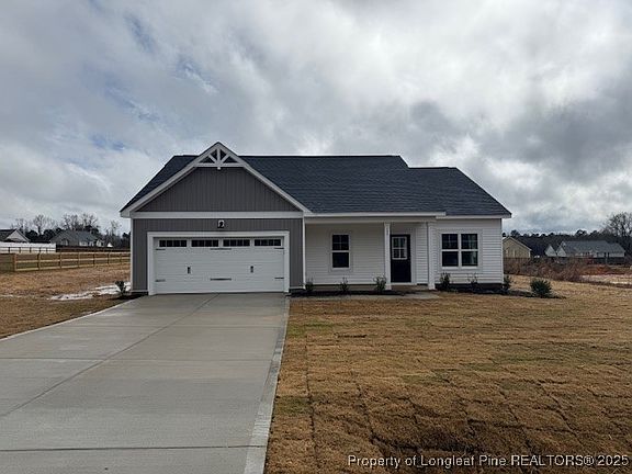NEW construction RANCH plan built by A&G Residential! The Leigh plan offers 3 bedrooms, 2 full bathrooms with open floor plan including granite countertops, SS appliances, gas log fireplace and LVP flooring in main traffic areas! Spacious primary bedroom with walk in closet! Covered front porch, rear patio and 2 car garage! Convenient to Fort Liberty and minutes from Raven Rock State Park!