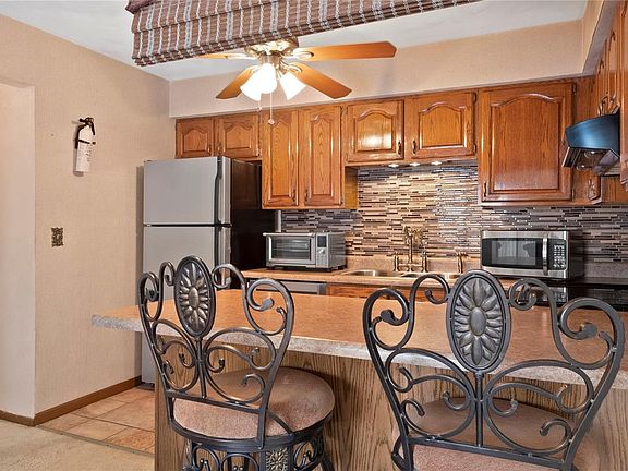 Cheaper than rent! 2 bedroom well maintained Townhouse on corner lot w/great layout! Great room w/cathedral ceilings, brick fireplace & triple window offering plenty of natural light. Kitchen features convenient breakfast bar, plus refrigerator, wine frig & stove that stay. Second bedroom, currently used as office, features french doors for privacy. Convenient dining area w/sliding door leading to deck & fabulous screened/glass three season room. Main floor bath w/mirrored vanity. Lower level features bonus room (could be bedroom #3) w/walk-in closet and full bath. Lower level utility room w/plenty of storage. Built in garage w/house entry offers extra storage space, in addition to recently installed under deck storage. Updates include: Roof, washer/dryer 3 yrs, refrigerator 4 yrs, stove 4 yrs, garbage disposal 6 mos., retaining wall 3 yrs. Before making offer on any property, buyer should independently verify all MLS data, derived from various sources and not warranted as accurate.