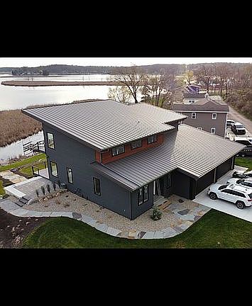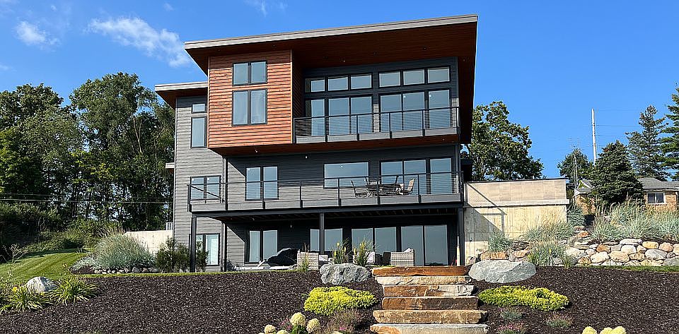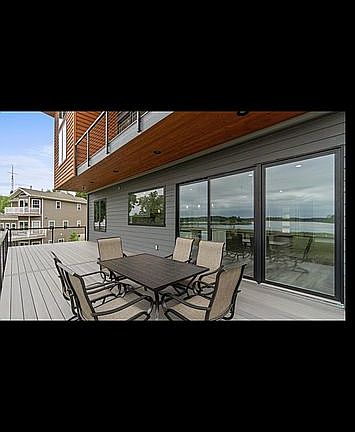 New 2 story home on walkout basement. 4,500 square feet. 5 bedrooms. 3 1/2 bathrooms. 4 1/2 car garage. South facing views of Snow Lake. 1/2 acre lot with 86 feet of water frontage. Dock and lifts stay in year round. Parking for 8+ cars. Outdoor kitchen on main level. Over 1,000 square foot patio with gas fire pit. Have new survey and certificate of occupancy.