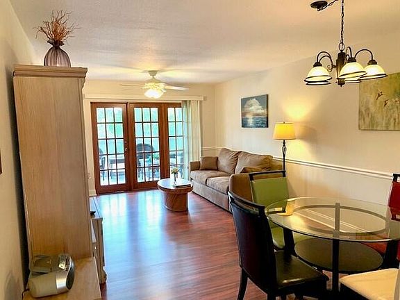 Clean as a whistle 2 bedroom and 2 bath villa with enclosed patio with water view. This unit boasts a newer roof, French doors, updated kitchen and baths, knock down ceilings, newer flooring-tile on diagonal in kitchen & patio, laminate through the living areas. Both master bedrooms have walk in closets. One is tub/shower combo and the other has a shower. Lots to do in this active over 55 community. There is a Social Activities Director with clubs, bingo, Fitness Center, Clubhouse, Community Room, Heated pool and more. There is even a cafe for breakfast or lunch. Up to two cats are allowed. Sorry, no dogs. The unit may be leased after owning for 1 year. Furniture Negotiable.