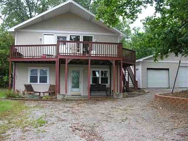 Outstanding Views of Snow Lake in a great neighborhood!! This home features a beautiful wood & ceramic fireplace with an open stairway leading to the upper floor. Two Master Suites - one on the main floor & one on the upper floor. Bedrooms are very large. A large kitchen with an open concept living room over looking Snow lake. Tones of storage and a large deck to relax on and catch the sunsets. The garage has two extra rooms and could easily be heated to make into a guest house. Seller owns one half of a dock with a neighbor that is on a public easement.