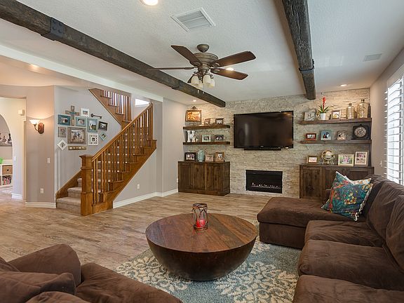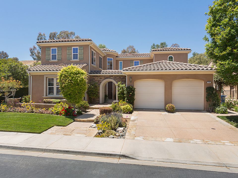 Gorgeous Mahogany home in gated Long Canyon Estates with sharp curb appeal, nice sized yard and close access to community pool & spa. This very popular floor plan features: great room open to large kitchen, all 4 bedrooms have en suite baths + guest bath, formal dining and office area, convenient upstairs laundry room w/sink, 3 car tandem garage, french doors leading to front courtyard and to backyard. Property features many upgrades & updates and seller has spent over 110k recently to include: Italian porcelain (wood like) flooring, custom beams on great room ceiling, crown moldings, large baseboards, new interior and exterior paint, wood shutters, new front door, new exterior light fixtures, custom built in cabinetry, updated fireplace with split face stacked stone wall in great room, Nest thermostats, sharp kitchen with white cabinetry & stainless steel appliances w/built in frig, granite counters w/ island, Tesla charger included, marble at master bath shower/jetted tub and dual sinks, newer LED recessed lighting, surround sound +outdoor speakers, central vac, hideaway screens, and more. Sharp yard with stamped concrete patio, large grass area room for pool and privacy. Community pool/spa across street and very close to comm park and trails.