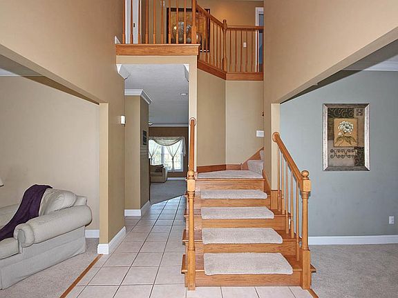 Dramatic, Custom built, Carrington Estates Home on a sprawling lot with walk out lower level. Main level with high ceilings and crown molding. Traditional appeal meets character and architecture to provide tremendous curb appeal. 2 Story entry foyer flanked by den and formal dining rooms. Kitchen opened to Family room with gas fireplace. Lots of new floor coverings. Great views. Finished lower level includes 5th bedroom, Rec Room and Flex Room. Something here for everyone and in one of Mt. Zion most popular additions located in the heart of town near parks, trails and schools!
