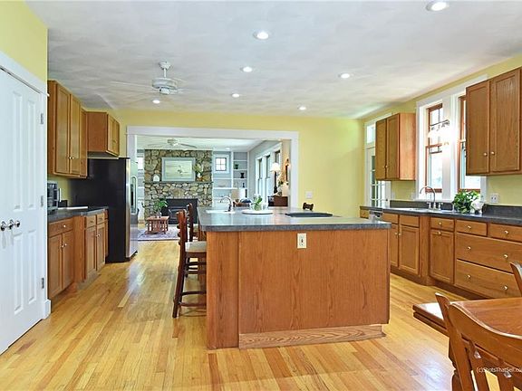 Custom built 3-4 bedroom home in Exeter conveniently located on the NK line near Yawgoo Valley and Beechwood Estates. This private one owner home is filled with character and charm. The screened in front porch greets you as you pull up the long and private drive. Hardwoods throughout the first floor with amazing windows allowing the beautiful natural light to flood in. Spacious eat in kitchen with huge island, stainless appliances and loads of storage flows nicely into the family room. Stone fireplace flanked by built ins make this a cozy room to gather. Open concept continues with dining room, home office/bedroom, full bathroom and big laundry/mudroom area. Second floor has master bed and bath with two additional bedrooms and full bathroom. Lower level is finished with a 4th full bathroom, large family room and another finished room just waiting to be an in law suite. Gorgeous grounds offer peace, space and serenity.