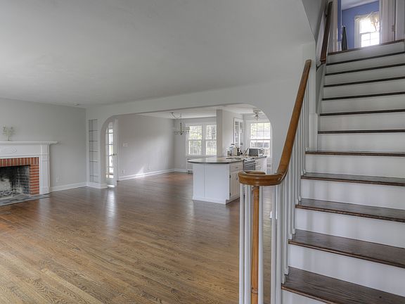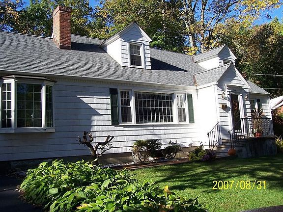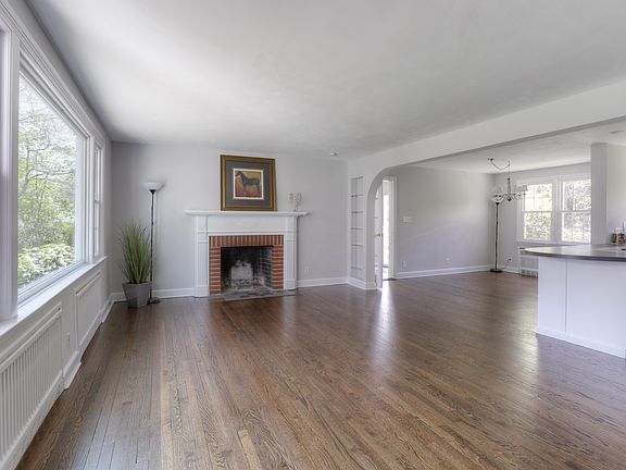 **PRICE ADJUSTED TO $469,300!!** 4 Bedrooms, 2 Full Baths Cape, Close to 2,000 sq ft on over a quarter acre. Hardwood Floors just refinished and interior painted, Open Plan First Floor with Kitchen - Dining - Living sharing the wood Burning Fireplace....Large additional Family Room with sliders to Patio and fenced in Backyard. 1 Car attached Garage with workspace. Big unfinished basement would make a great playroom! Great Neighborhood, walk to School and Library
