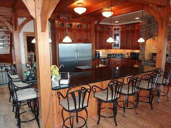 Million $ view from this 'like new' timer frame home built by Bill Steel. 5 Bedrooms and 3.5 baths. Incredible kitchen with granite counters. 2nd kitchen in the huge walk out game room. geo thermal heat makes this home super efficient. Extra 11x12 den on the 1st floor. 12x30 loft overlooks living room and stone fireplace, exercise room, pool house with rough in for bath and ideal spot for your future pool.This Two-story Contemporary home features Frame exterior, Composition roof, 3 car Attached Garage, Ceramic Tile and Other Type and Wall to Wall Carpet floors, 2 fireplaces, Propane and Forced Air heating, Electric and Central Air cooling, 4 bedrooms, 3 full bathrooms, 1 partial bathroom, Automatic Garage door opener, Dish Washer, Electric Stove, Window Treatments, Microwave Oven, Refrigerator, Security System.