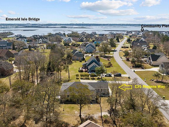 Make it yours! Spacious, open 1-story home featuring many renovations is set on over a half-acre in the highly-sought after, gated waterfront community of Magens Bay. This beautiful home w 3 bedrooms 2.5 baths, and an office is located in the Carteret Co. school district near the Emerald Isle Bridge. Conveniently situated btwn Camp Lejeune and Cherry Point and quick access to downtown Swansboro, Cape Carteret or Morehead City. Enjoy your morning coffee from one of several decks, concrete side patio or on your screened in porch. Improvements include a new American Standard Gold 824 HVAC with free transferable warranty, Leaf Filter gutter protection system with free transferable warranty, two brand new full bathrooms, custom built owners WIC, sliding glass doors with built-in blinds, custom fit/cut blinds and plantation shutters, new garage door, and new well pump and fully functioning irrigation system (runs off well water) and more. An open backyard w/ treed perimeter featuring a stoned area perfect for a fire pit, new sod, and a back deck provide the ideal backdrop for fun-filled days and evenings Neighborhood amenities include a community pool, basketball/tennis court, and a Soundfront (recently rebuilt) fishing pier with kayak launch and built-in seating for watching the sunset over the EI Bridge.