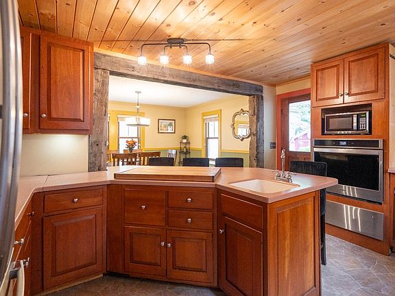 Introducing a charming four-bedroom, two-bathroom house now for sale at 135 Main St, Meredith, NH. Strategically located in the quaint town of Meredith, this residence is within walking distance to a vibrant downtown area featuring an array of shops, restaurants, and the scenic Lake Winnipesaukee. Spanning three levels, this home boasts an inviting open-concept design on the main floor. The eat-in kitchen seamlessly flows into a large dining room, accommodating family gatherings with ease. Adjacent lies a spacious living room, enhanced with a cozy woodstove. Additional amenities on the ground floor include a screened front porch and a private office space with its own entrance, perfect for remote work. On the second floor, find three well-sized bedrooms complemented by a full bathroom. You will love the hardwood flooring, wood trim, custom beams, and tray ceilings that add character throughout. The third floor offers a sizeable bedroom and a 3/4 bath, featuring wide plank hardwood floors. Recent updates include a new asphalt shingle roof and vinyl windows. Outside you will find a peaceful backyard sanctuary. Here, you can enjoy a relaxing patio, vibrant garden space, and a grassy area for recreation. The property also includes a one-car garage, providing additional storage solutions. This property promises a blend of comfort, convenience, and character—an ideal home to make lasting memories.