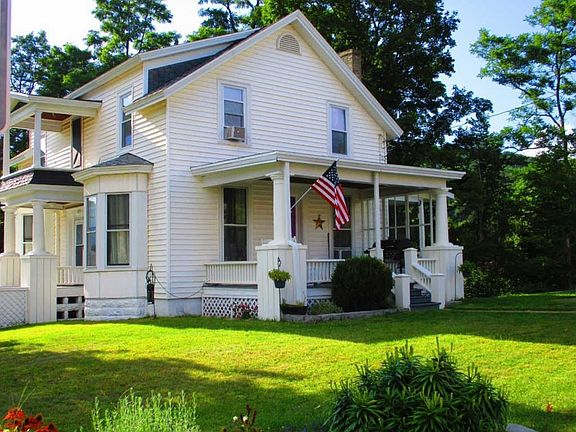 Move right in to this charming 3 bedroom 2 full bath village home with income producing apartment on a nice corner double lot! The main house features 3 bedroom and 2 full baths with 9' ceilings, a renovated kitchen with walk in pantry, newer full bath on the first floor (new plumbing to both baths) and new Anderson windows on 2nd floor.There are a lot of original details throughout to keep the charm of yesteryear with detailed molding, hardwood floors, rounded walls and bay windows! The fireplace in the living room is great for those chilly nights and the formal dining room for space to entertain. Upstairs are 3 bedrooms and full bath with soak tub and separate shower. There is plenty of storage! Also enjoy the second floor balcony off the hallway!The detached two-car garage with work bench adds to the convenience of village living. The 1 bedroom, 2 bath apartment can be used for investment or for family members or friends!The 1/2 acre of well manicured lawn has both flower and veggie gardens along with a lower level area to continue your own backyard paradise! Conveniently located to school, post office, library, seasonal movie theater and restaurants all within walking distance!