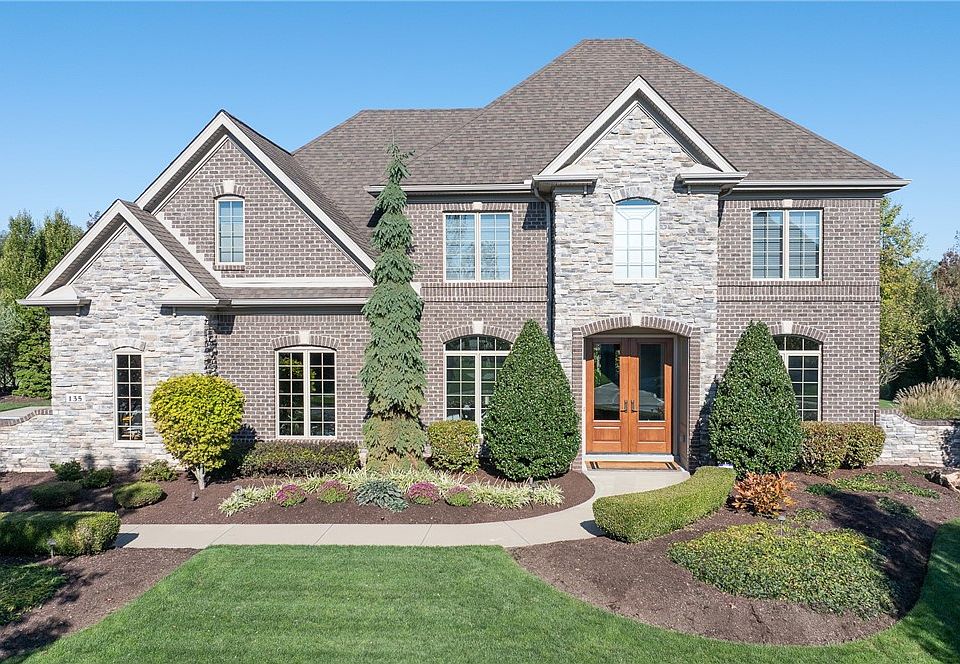 Beautiful Barrington custom home on a level private lot in desirable Carriage Manor. Hardwood floors throughout the main level, gourmet white kitchen with commercial grade appliances open to the sunken family room with box beam ceiling. 1st floor office with french doors and built-ins and formal dining with crown molding. Primary bedroom with tray ceilings, spa-like bath with dual sinks and walk-in closet. 3 additional bedrooms, all with tray ceilings and 1 with jack-n-jill other with ensuite. Convenient 2nd floor laundry. Finished walkout LL game room with full bath, workout room and great storage. Roof-covered patio and serene landscaping. New front doors, pristine condition. Seneca Valley SD.