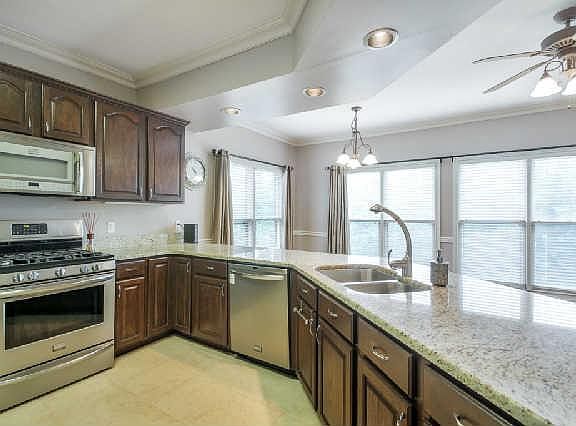 - Included: Disposal, Microwave, Dishwasher, Built-In Gas Oven, Gas Range