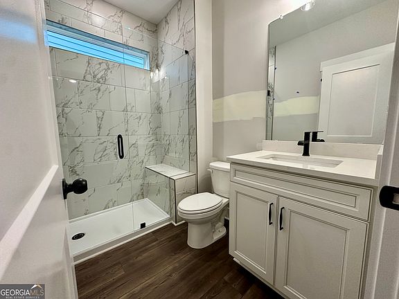 Ready NOW! Located in the beautiful Marble Tree community in Ball Ground, this thoughtfully designed Abbeyville floorplan by Eastwood Homes offers flexible living spaces across three levels, perfect for today's modern lifestyle. Featuring an alley-served garage, this home enjoys a clean, charming streetscape with enhanced curb appeal-keeping garage views off the front of the home and creating a more inviting, neighborhood-style setting. The main level welcomes you with a private office framed by double glass doors-ideal for working from home-along with a full guest suite that's perfect for visitors or multi-generational living. The open-concept layout flows effortlessly into the heart of the home, where a stunning luxury kitchen takes center stage with a built-in microwave and oven combo, a 5-burner gas cooktop, and a statement shiplap hood vent. The living room is anchored by a beautiful stone fireplace with a cedar mantel, adding warmth and character to the space. Step outside to the covered back porch overlooking a fenced backyard-perfectly sized for easy maintenance while still offering a private outdoor retreat. Upstairs, the layout is thoughtfully designed with a spacious primary retreat, two additional bedrooms, and a full bath-creating the perfect balance of privacy and function. The primary suite features a large walk-in closet and a well-appointed bath with a shower and tub combination. The third floor adds even more versatility with a bonus room and its own full bath-ideal for a media room or hobby space. Set in the heart of Ball Ground, this home places you just minutes from local shops, dining, and Northside Hospital Cherokee-offering the charm of small-town living with everyday convenience. Plus, buyers can receive $15,000 toward closing costs when using Sabal Mortgage, making this opportunity even more attractive.