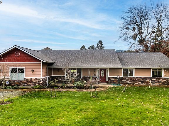 Exceptional Agricultural Opportunity in the Heart of Umpqua Valley! This prime 5+ acre farmland offers incredible potential for hay production, livestock, or diverse agricultural ventures—currently yielding up to three hay cuttings per year with the benefit of river irrigation rights. Fully fenced and equipped with irrigation lines and equipment, the property includes a dedicated fenced garden area and greenhouse for expanded growing opportunities. Minimal train traffic ensures peaceful rural living, while the beautifully crafted single-level main home adds comfort and style with exquisite hardwood floors, a gourmet kitchen featuring a cooking island, and granite countertops. For storage or hobbies, you'll find a spacious 3-bay shop, a machine shed, and a converted silo. An additional dwelling unit up to 900sqft may be placed on the property. The adjacent 12.42-acre vacant parcel is also available for purchase, offering even greater potential. Tractors and hay equipment are negotiable—don’t miss this rare chance to own a versatile and productive agricultural property in the scenic Umpqua Valley!