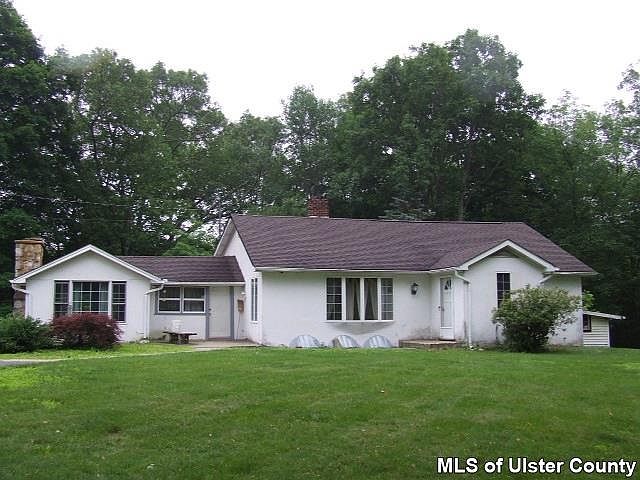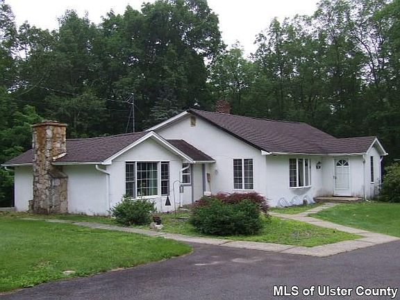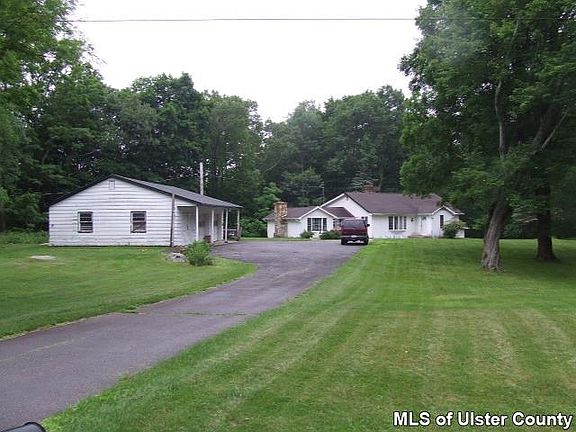 3 BEDROOM RANCH WITH 3 CAR DETACHED GARAGE ON OVER 5 ACRES IN PINE BUSH SCHOOL DISTRICT!!! Home offers 3 large bedrooms including a master with full bath(stand-up shower).Living room has hardwood floors and wood burning stove. Family room offers cathedral ceilings, wood beams, and large stone fireplace. Large eat-in kitchen with brick bump-out. Full bath with tub. There are extra wide hallways and tons of storage. Full unfinished walk out basement. The furnace was replaced in 2009, the roof was done in 2007, and many windows have been replaced. Outside offers flat yard, long driveway, 3 car garage, garden, and sits on over 5 acres. Sits back from the road and offers privacy!!